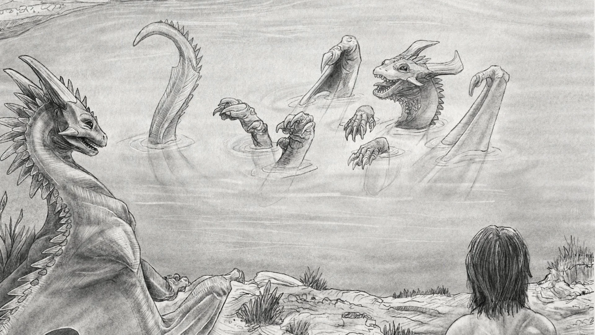 The young woman joined her friends with excitement. They cheered as she recounted all the details of her wipeout to the friends now surrounding her. They all laughed with ‘oohs’ and ‘awes’. Rowan shook his head with a smile as he joined the group of humans and dragons along the shore. Listening to the group of friends retell the traumatic experience, he laughed along with the abundant joy of a potentially harrowing experience.
